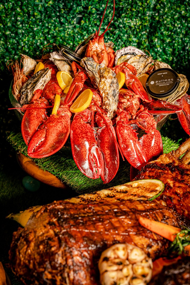 Dive into a premium sea-to-table spread starting with Sea Treasures like chilled Boston Lobster, Tiger Prawns, Japanese Oysters, and Mussels. Captivate your tastebuds at the Carving Station with a succulent Roasted Lamb Leg served with Couscous, Lamb Jus, and Dijon Mustard — a mouthful of goodness sure to get you flutterwackin’! Don’t miss the fragrant Lemon-Garlic Roasted Whole Chicken or our hot highlights like Slow Braised Angus Beef Cheek and Indian Smoked Fish Curry.