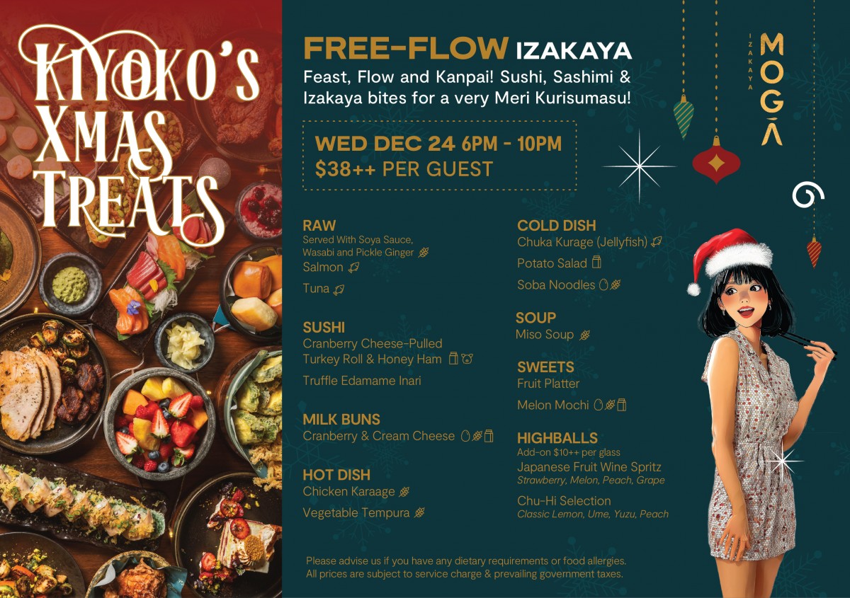 Step into the magic of Kiyoko’s Xmas Treats at MOGA on 24 December 2025 from 6pm to 10pm, where we indulge and celebrate a very festive Meri Kurisumasu!